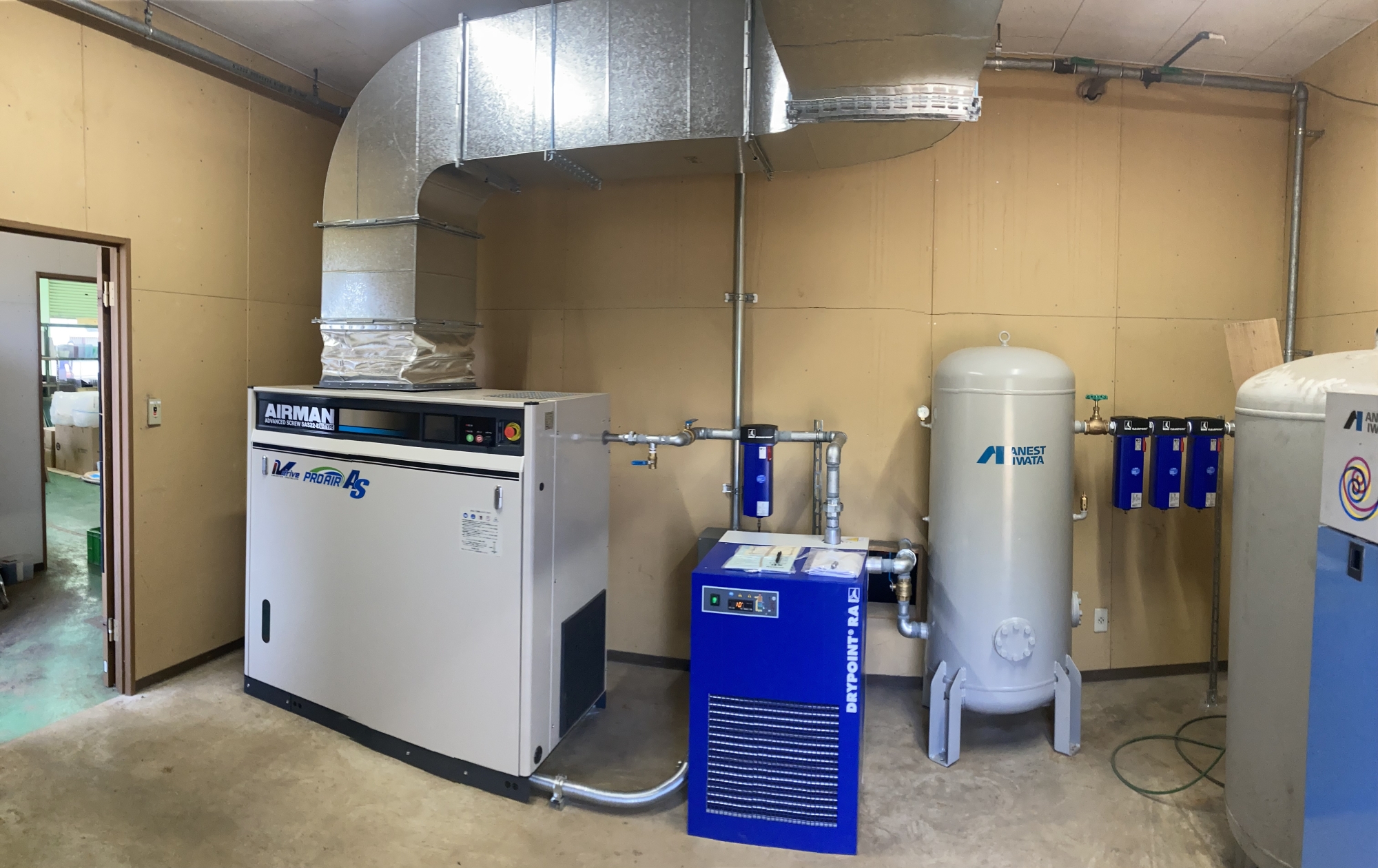 コンプレッサーの据え付け工事全般(空圧配管施工 ダクト施工等 既存機の撤去処分等)